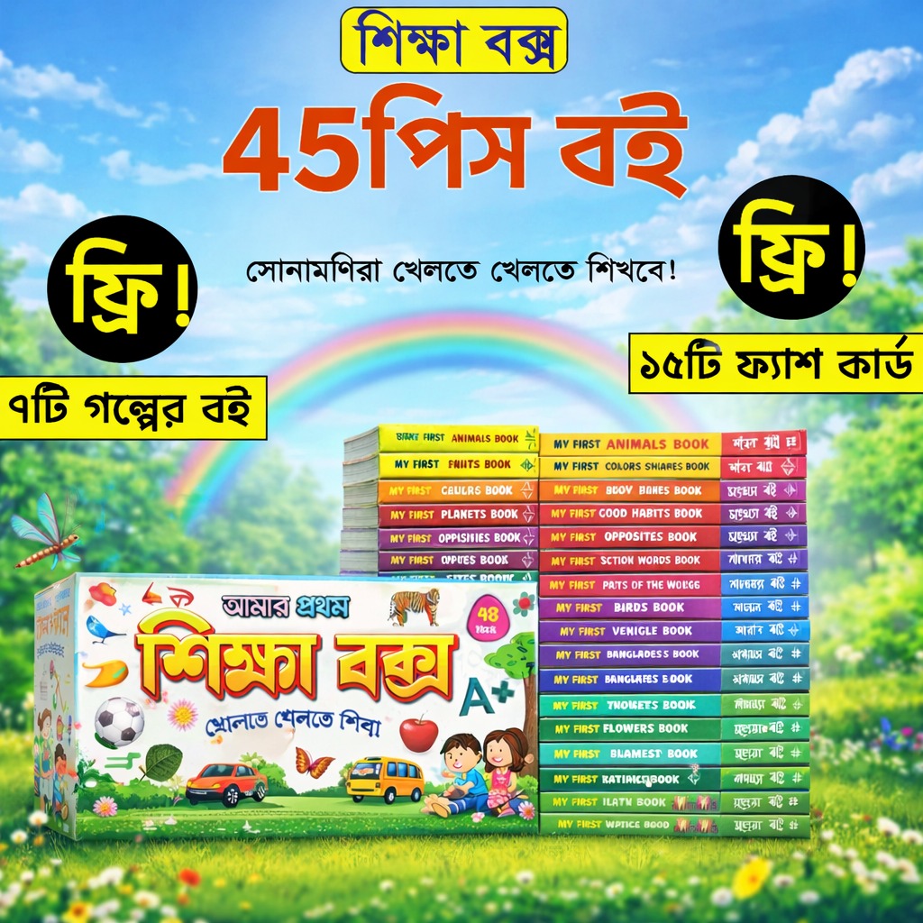 ৪৫টি আকর্ষণীয় বই নিয়ে তৈরি এই শিক্ষা বক্সটি আপনার শিশুর প্রাথমিক শিক্ষার জন্য একটি সম্পূর্ণ প্যাকেজ। খেলতে খেলতে শেখার মাধ্যমে বাচ্চাদের বেসিক জ্ঞান, ভাষা দক্ষতা এবং কৌতূহল বৃদ্ধি পাবে।